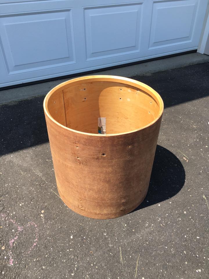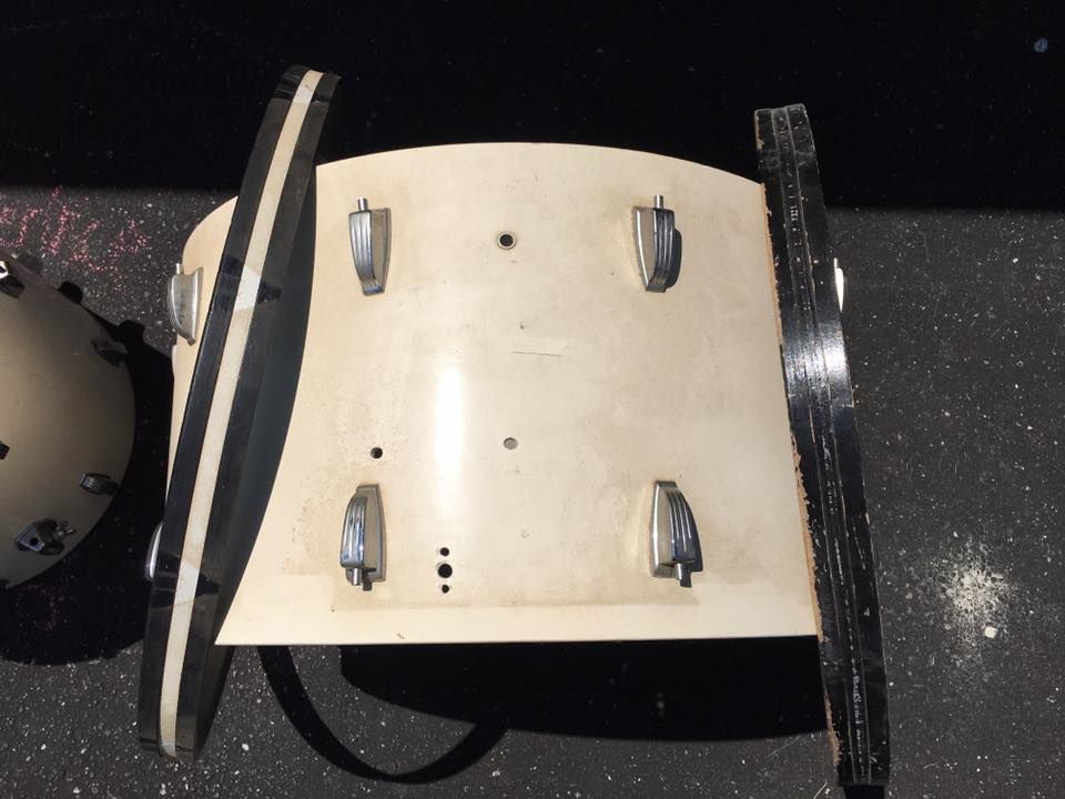 Hello friends, a few weeks ago i was looking at a kit online that was Bonham sizes. It really gave me this strong desire to have that size kit. I put some feelers out for a 26" and I was contacted the same day. Yesterday I came home from the Chicago drum show with the beginnings of my Bonham kit. I still need a 16x16 and 10x14 but I do have my 26 and 18 and a bonus 20" FT!!! The two floor toms are one number apart and the 26 doesn't have a badge. I will need quite a few things to get these together but it will be something I keep forever. As you can see the shells have a few issues but nothing that can't be fixed or that is affecting the drums. All the shells are painted white outside and at first I thought it was granitone but they are just painted gray inside. Looks like the bass drum had been dropped and pushed in at one point and someone repaired it. Its not horrible and the shell still seems to be in round. A head still goes on the way it should. I think I can probably sand the rough spot out of it and have it look fine. Both floor toms have some mold spots in them that concerned me at first but I am going to strip the paint both inside and outside of the shells. This project will take some time but I look forward to lots of pics and sharing and asking you guys questions. I may start a list of things Im looking for and post here and the wanted section soon. Thanks for looking and stay tuned.