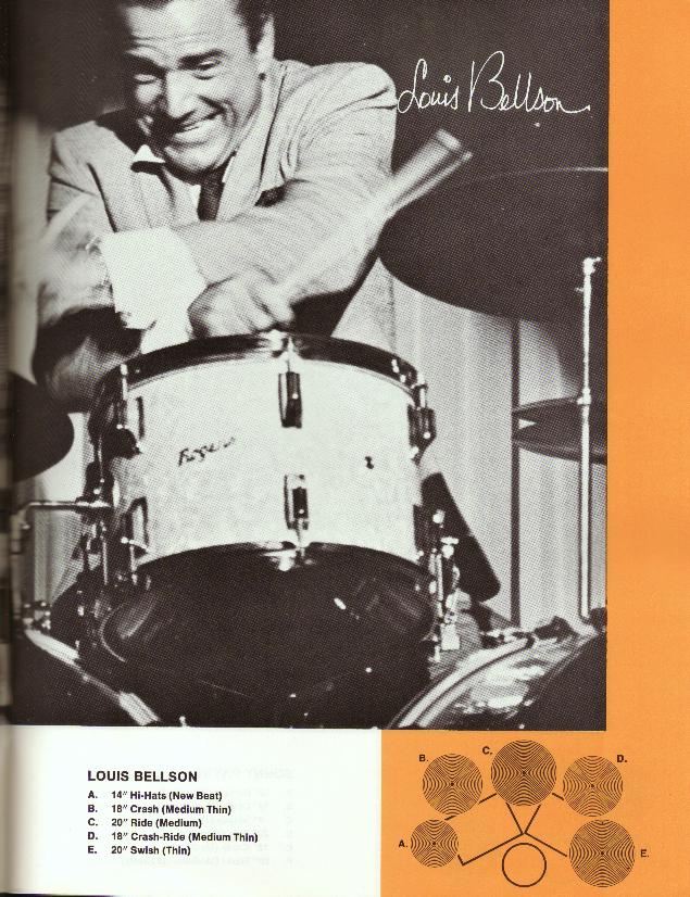 I've been working on some new charts and listening to Louie in the process. I'd noticed that his cymbal sound, especially his ride, was different from many other big band drummers (Lewis, Rich) and decided to look up what he used (say, from the late 70's through the 90's, or late 80's). Unfortunately there is no information I've been able to find that documents what he played - the Zildjian configurator doesn't work for him, and his own website has no detail at all. I seem to recall he used 14" New Beats (heavy bottom) and I remember a Zildjian 'A' Ping Ride, but that's all I can recall, and I think he used two different rides on his set. And I have no information on his crash or special-effect cymbals, swish, china, etc.