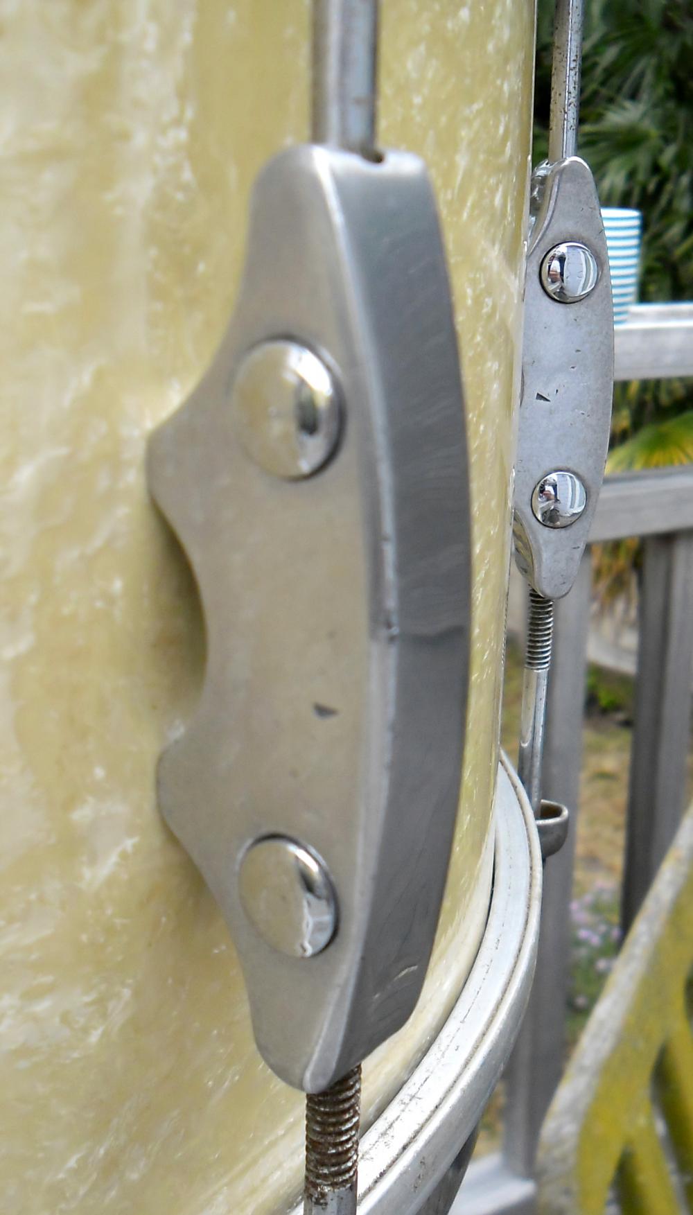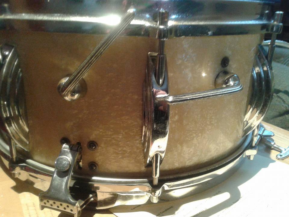 Funky- I really like that Cosmic 21 lug design too. They seemed to really be in love with Art Deco. The lug on the New Standard snare above is a solid cast piece and the round parts that slide in the sides is the swivel nut to accept the tension rod.