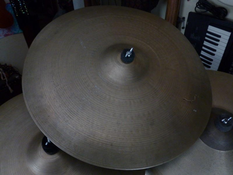 Could this 20" ride no-badge be an old K? I can not find any indication that there was ever a badge but this cymbal as you can see was severely abused; cleaned with something very abrasive and cracked. I sounds amazing still though and I would like to find out what it is; any help vastly appreciated!
