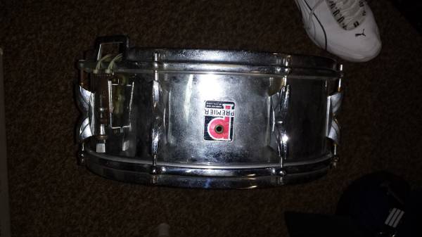 This snare is for sale locally and there's only one picture of it (and upside down, nonetheless). I don't know much about Premier metal snares, but the badge looks like the older one from the '60s and the rods look slotted when I look closely. Can anyone tell me by the lugs, strainer, hoops and what little there is in the photo if this is steel, aluminum or COB? Most cheaper 70s-80s Premier snares I see like this are steel, but I figured the older ones may be something else.