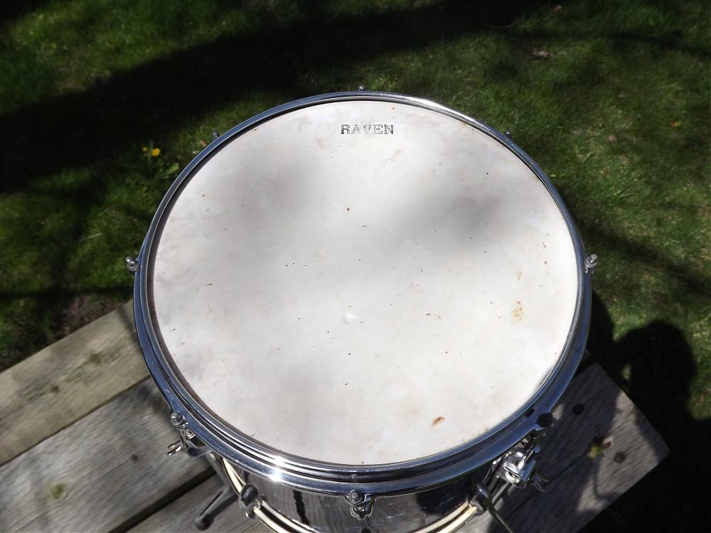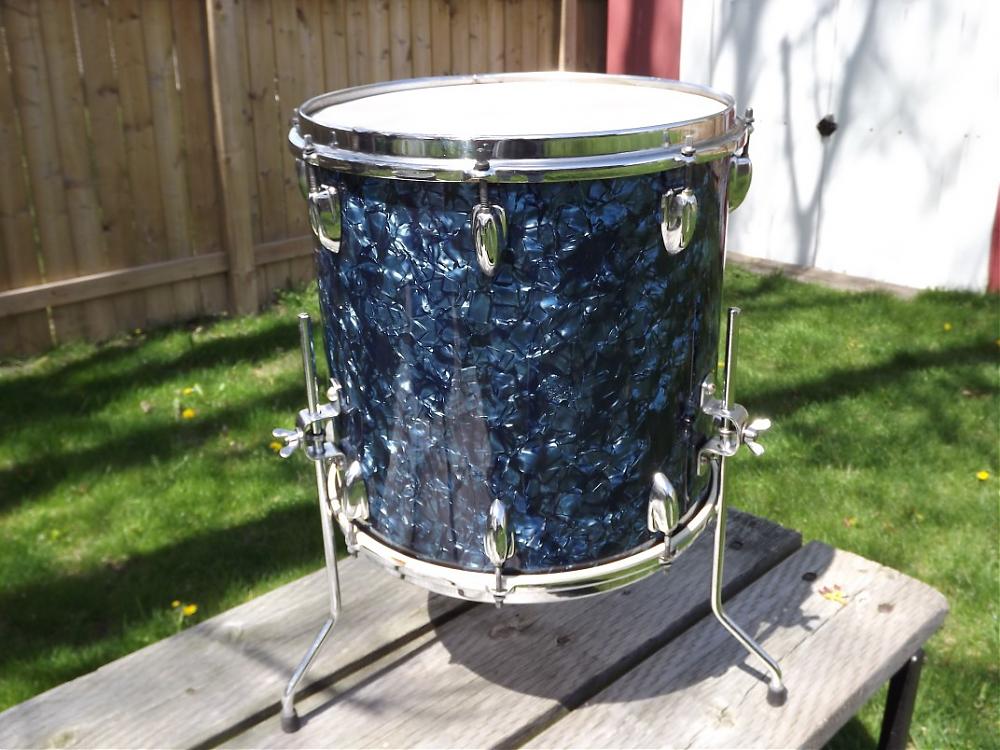 Anyone have interest in this floor tom? It is in excellent condition but has no badge...Doesn`t look like a re-wrap...I`ve left the Raven heads that came with the drum when I received it...Will need new heads...3 ply with re-rings...Minor pitting on chrome...Very few scratches on wrap...Cleaned and polished...Can includes fibre case...
