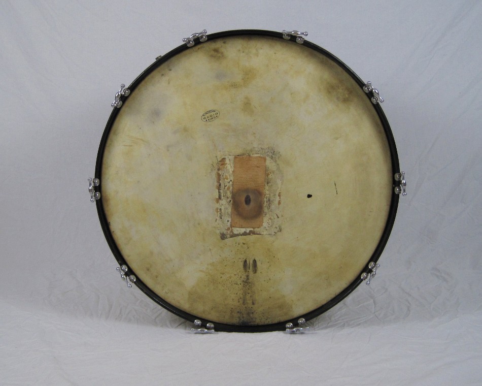 Her father, Rick, had moved from Brooklyn out to Las Vegas after WWII, and worked as a bartender at the famous New Frontier Hotel, where Gene's band occasionally played. Gene and Rick fast became friends, and they hung out socially when Gene would come through town. One time, in the 1950's, Rick asked Gene if he ever threw away his old bass drums, and if so, could he have one to use as a coffee table. Gene said he would see what he could do, and a few months later this bass drum showed up on Rick's front step. He put a glass top on it, and used it as a coffee table for over 40 years. After Rick's passing, the drum was inherited by his daughter, who had grown tired of lugging it around, and decided to sell it.
