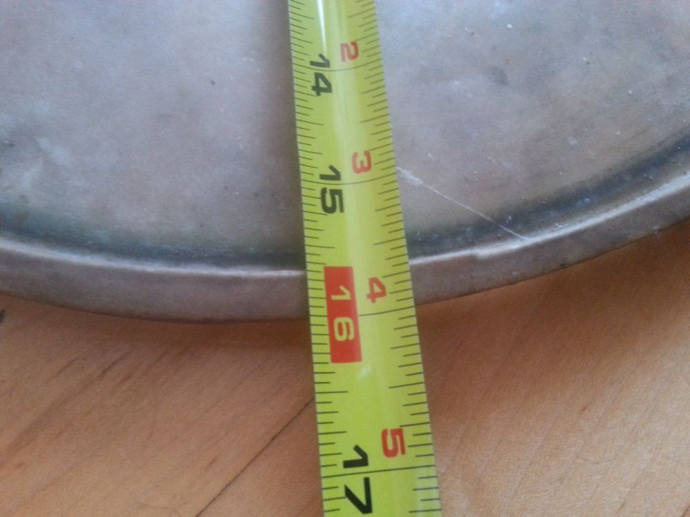 It measures just over 15 5/8 of an inch from inside ring to the other.