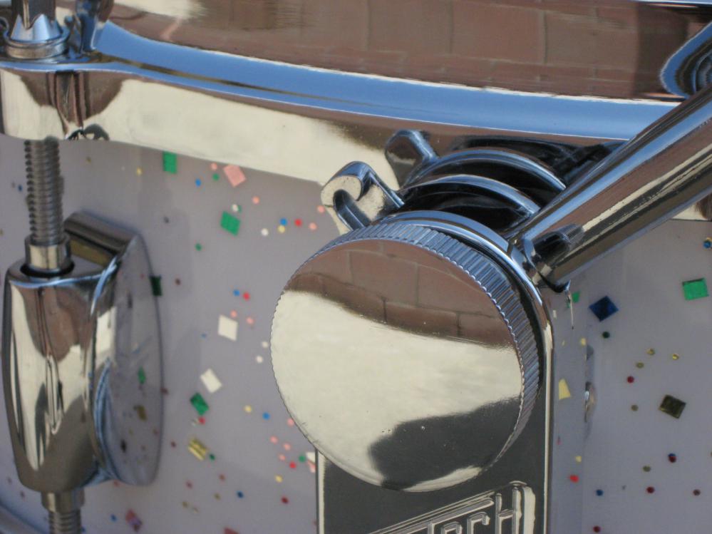 I find it amazing that the vintage drums that sell for the most money, Gretsch, seems to have the weakest strainers; Lightning (both versions), Renown and the infamous Micro-sensitive! At least the Micro has been reproduced into an excellent strainer! The locking feature is really cool! Here's my USA Custom, 4.5x14, with the new Micro.