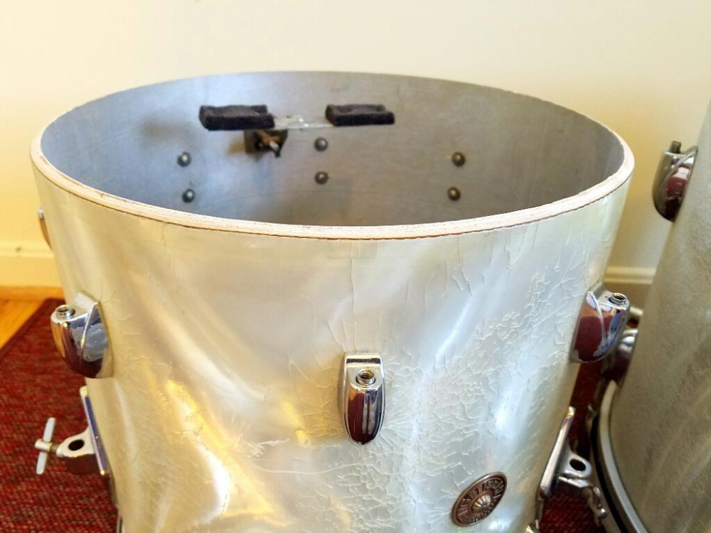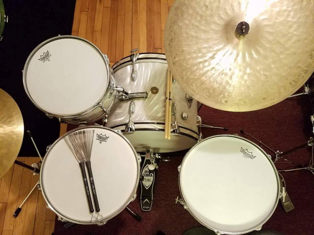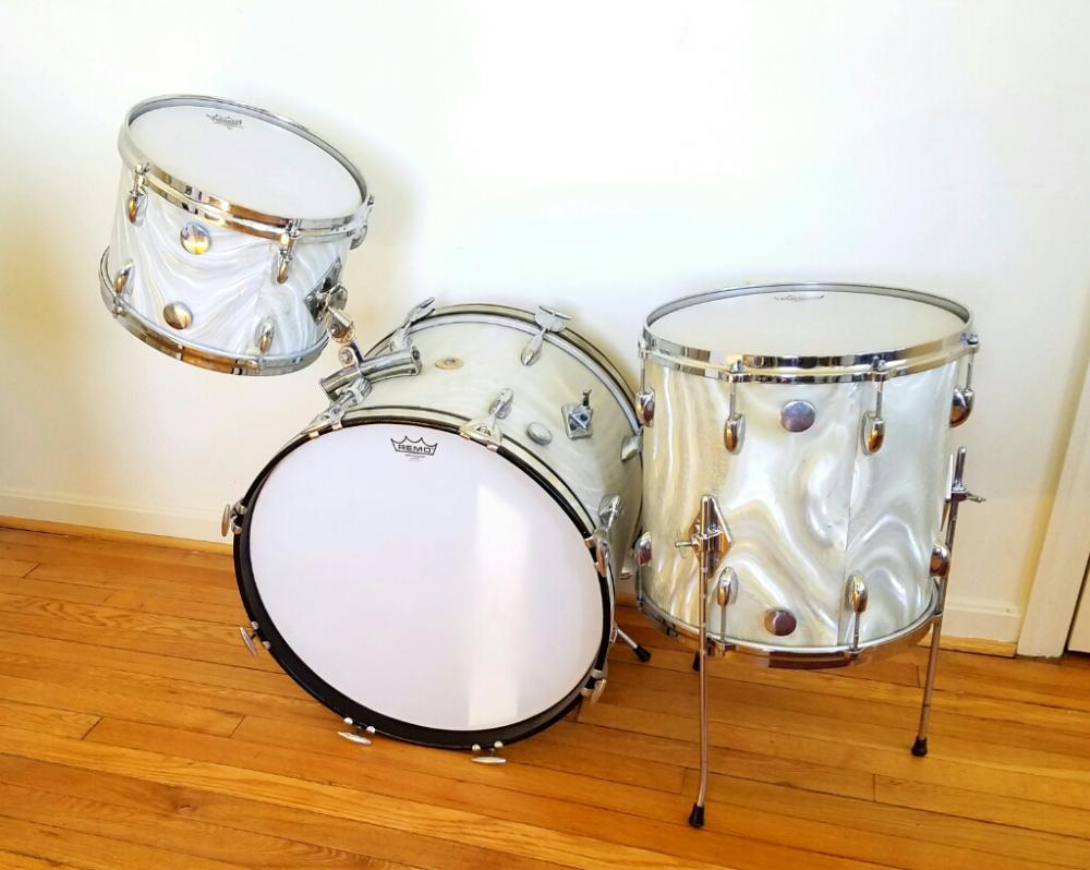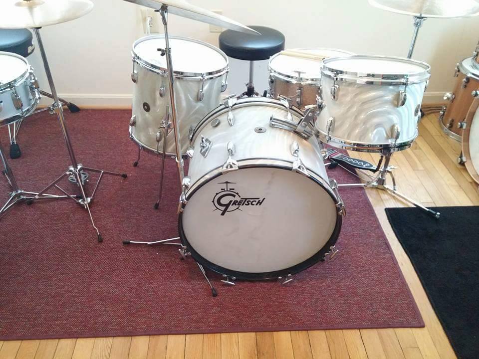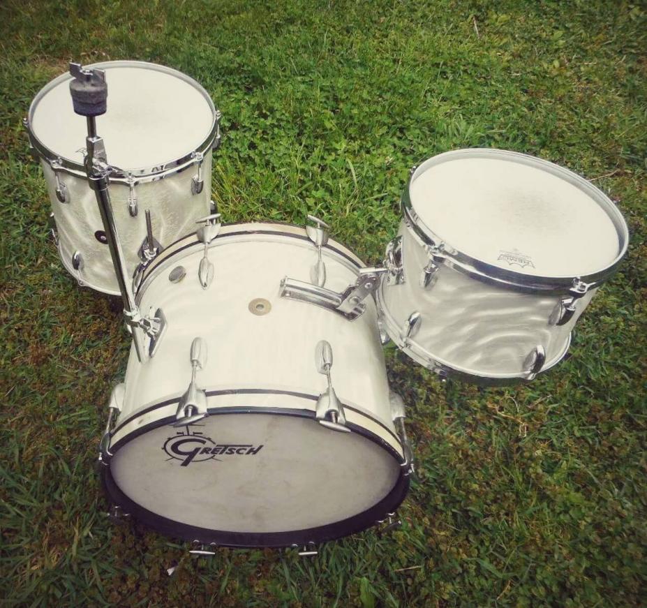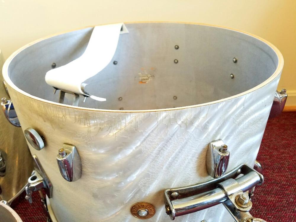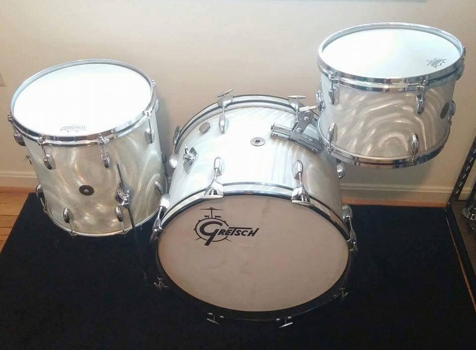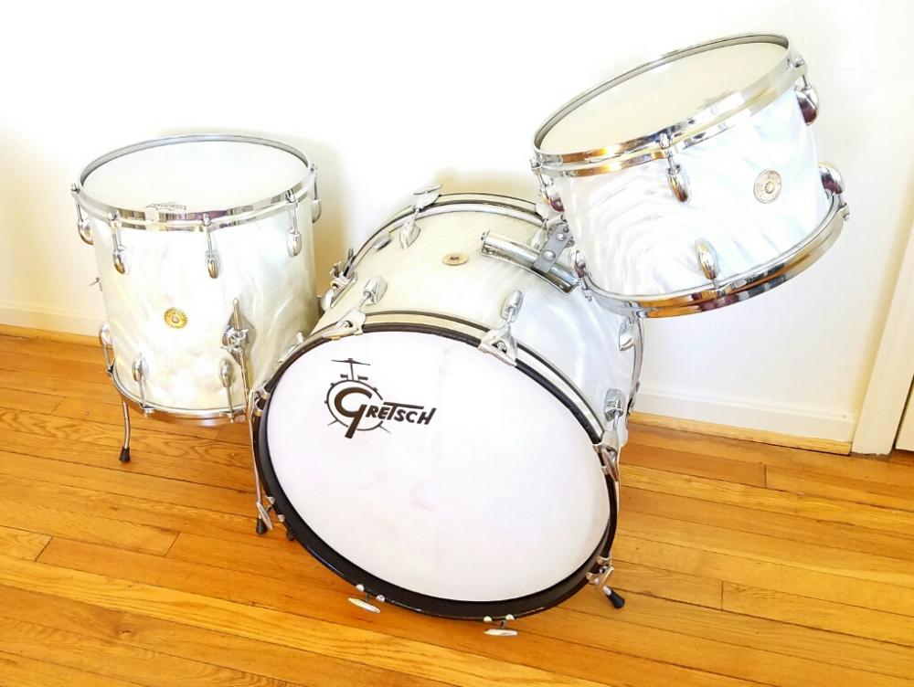 Gretsch early 1960's Progressive jazz kit for sale. 12 14 20 with no extra holes or modifications. They will be sold as the shown in the first picture; three drums only. This is an incredible sounding kit and heads fit without trouble. Some of the wrap is rough in spots and some hardware has some pitting. A solid 7.5 out of 10. $2,000 plus shipping from Maryland. I ship worldwide.