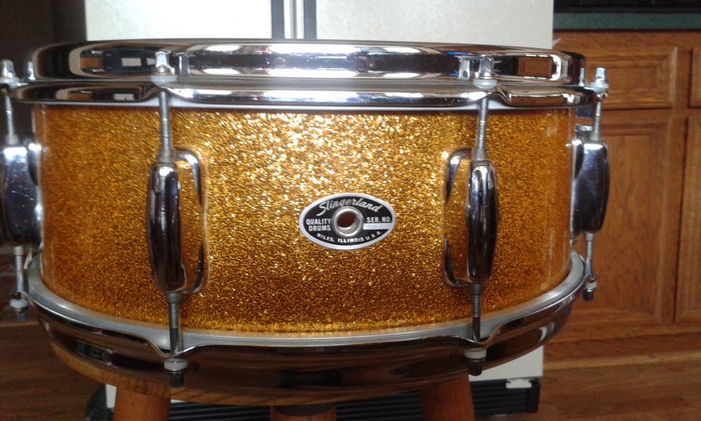 I'm hoping that some of you Slingerland experts can help date this particular snare. What's throwing me are those plastic washers, as well as the pic of the shell, which doesn't include any reinforcement rings. Any words of wisdom would be greatly appreciated!