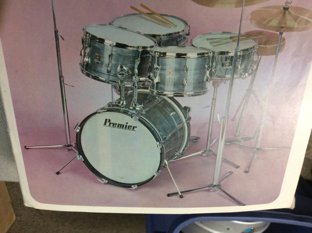 Sorry my first post here is with a question. I recently purchased this set of Sparkling Gold Premier drums. I have been looking through the catalogue scans but cannot certainly i.d them.