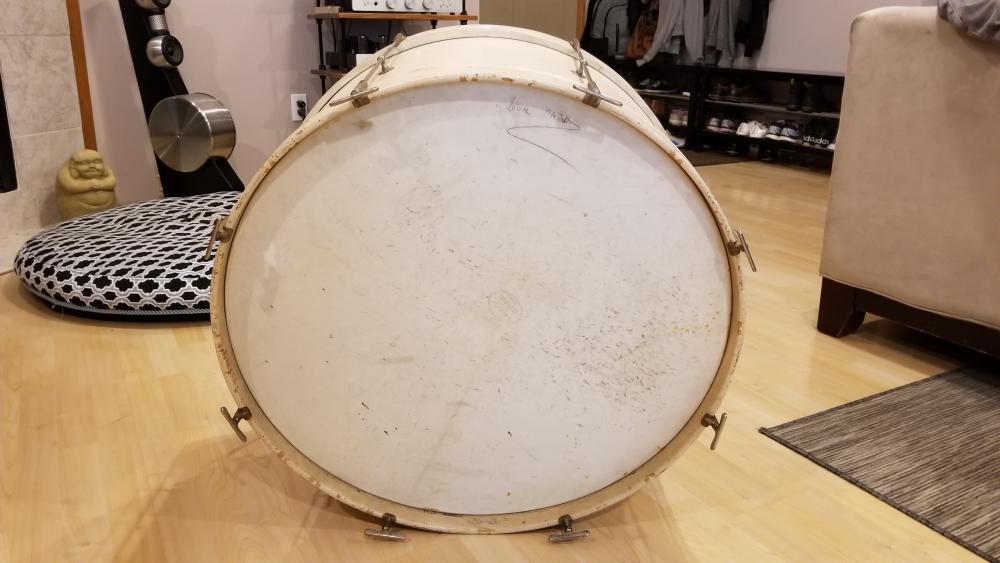 This Leedy bass drum came with the Leedy snare I just picked up. It is 26" and 12" deep.