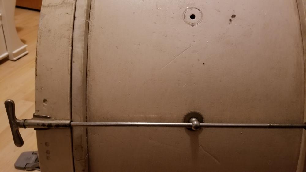 On the batter side hoop there are a few round indentations that could have been for mounting things like a cowbell or something.