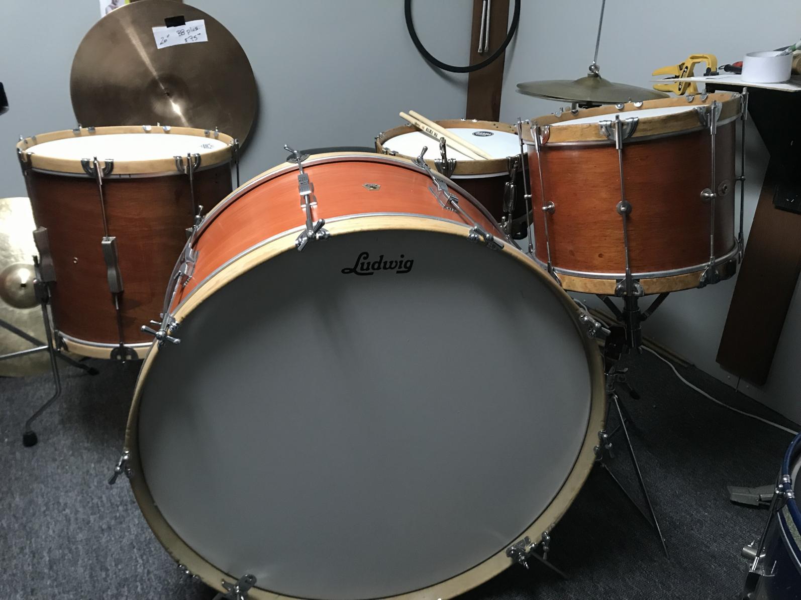 I am building/ restoring another "marcher" kit. So far, the snare, tom and bd are ready. Next will be the FT. not easy to find 16" wood hoops. BTW, that 28" BD is an absolute MONSTER.