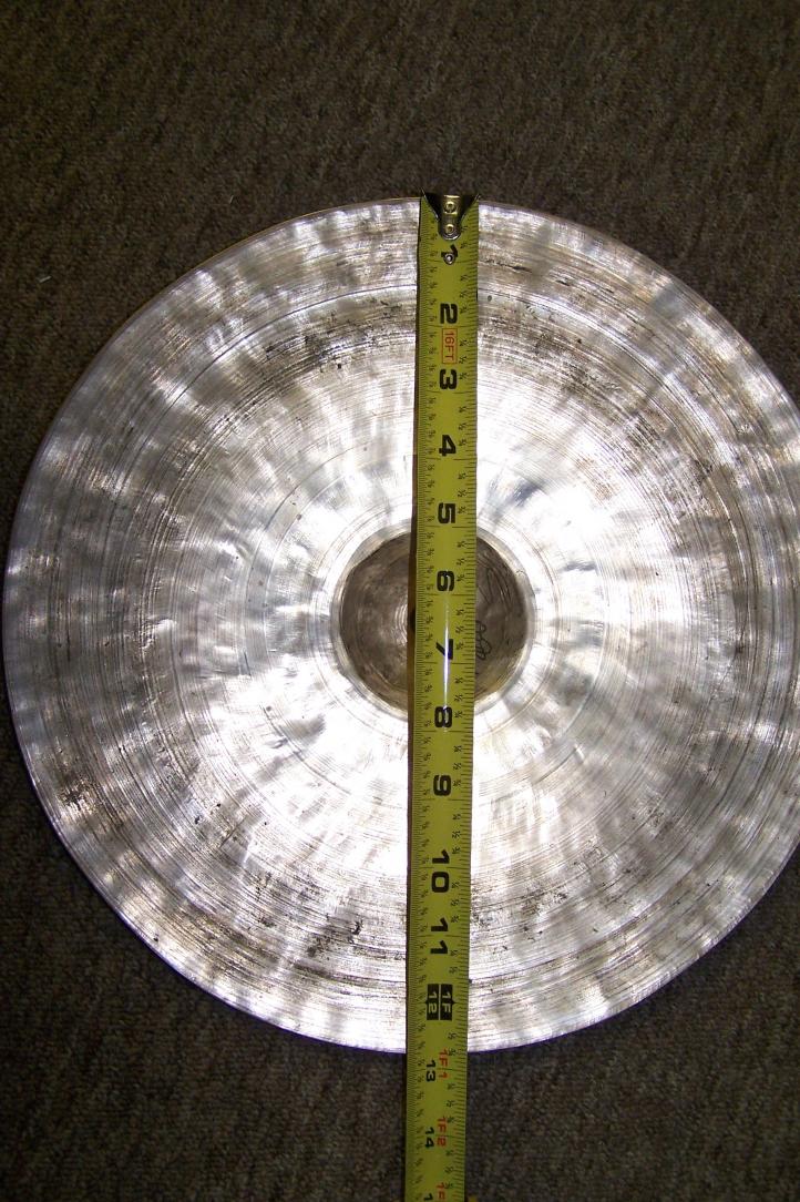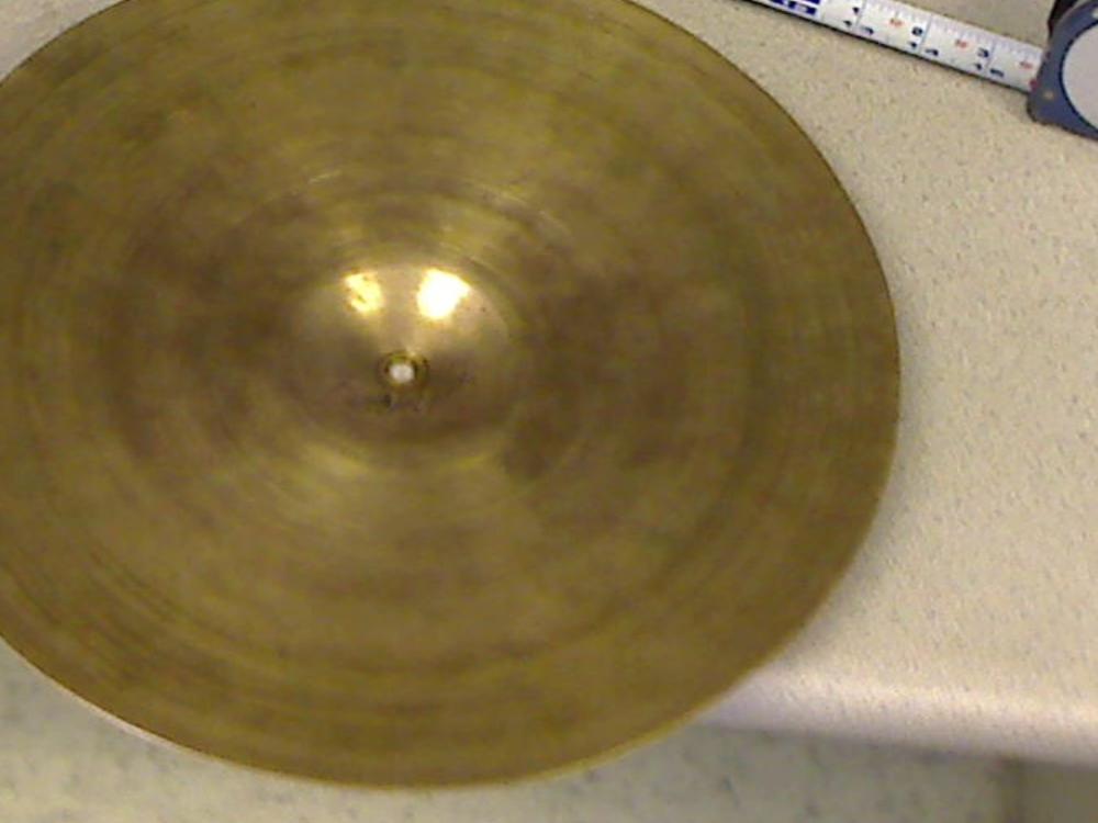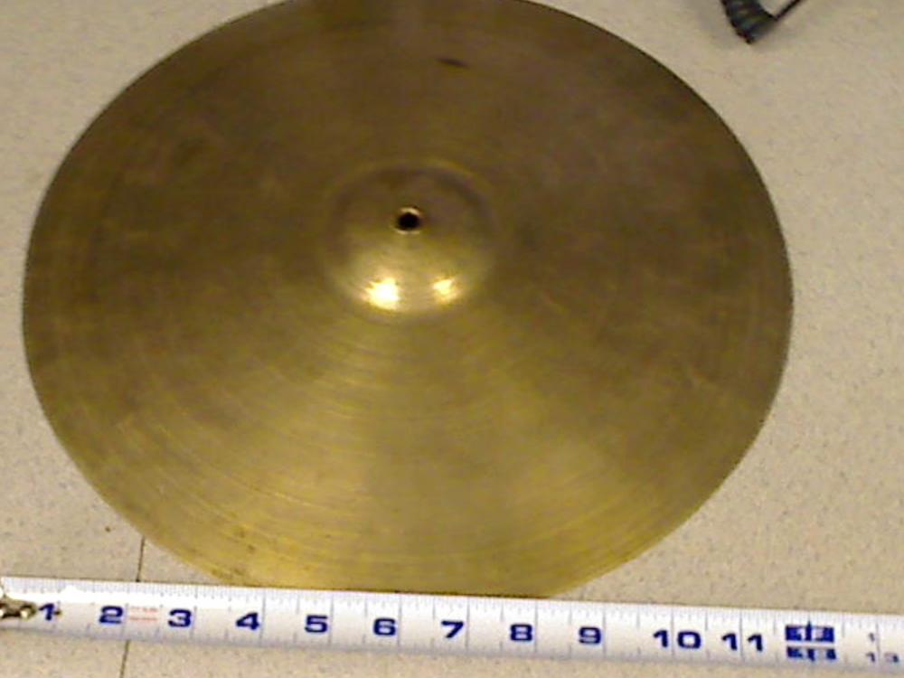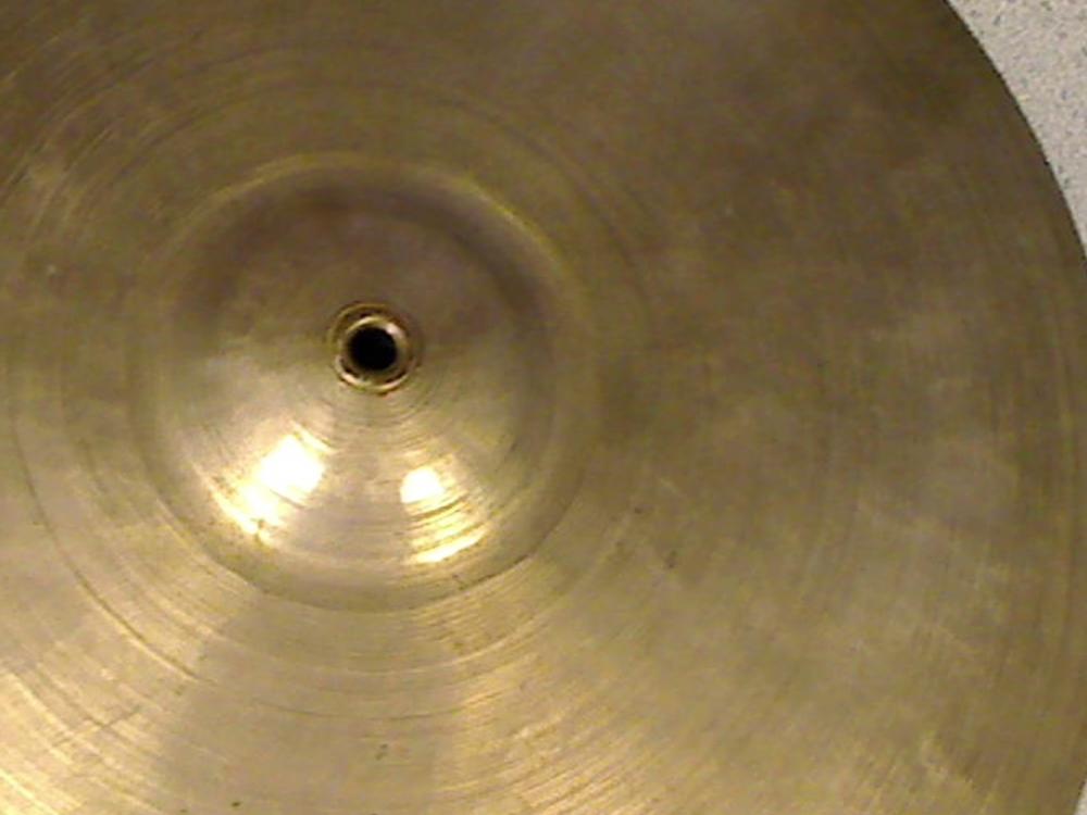 The grommet in the bellhole tells me that this is an orphaned marching band cymbal. This means its a heavier type than a drum set type. That translates into less interest. In this size it's the drum set players that would be your market. Drummers will buy the heavier ones and adapt them for use as hi-hats. But unfortunately this size is too small for that. So I think you be doing well if you could get somebody to pay you $100 for this piece. Comparables are essentially non-existent, so would be an estimate. There's just not a much of an interest in the smaller and heavier ones like this.