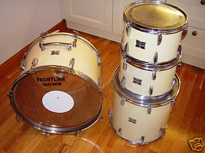 This has been listed as a vintage Hoshino - assume it's the tama hoshino and not the other one, noting the style similarities in the badge. Weirdest thing is the mounting bar style tom mount! I know some seriously vintage kits used to have these, but this is 60's at it's oldest I'd say. Seller says it's 12, 13, 16, 22, white sparkle. Any idea on sound, and what would be a reasonable price?