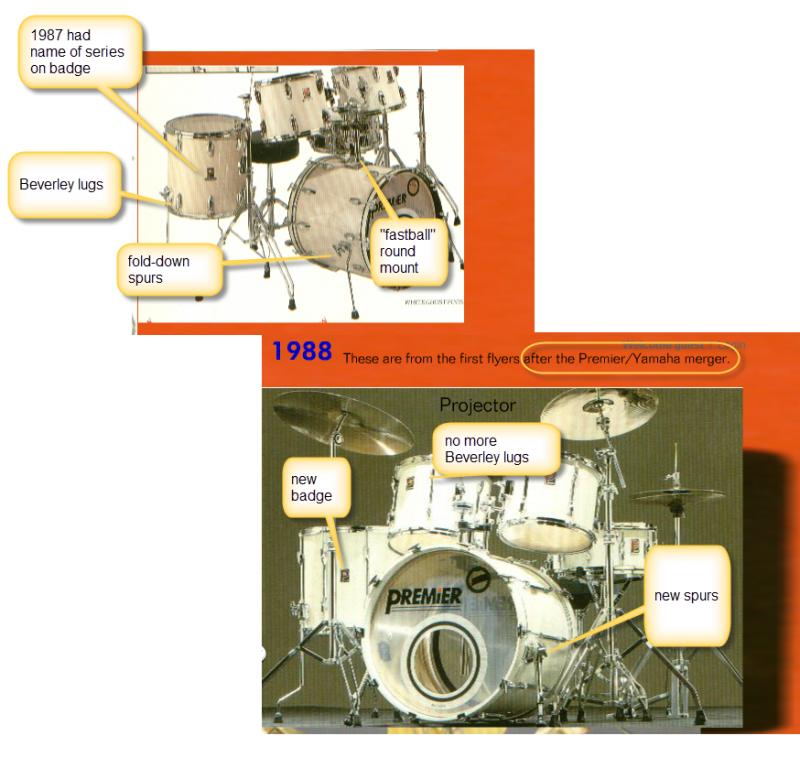 I bought my Projector brand new from Professional Percussion in 1985, and I still have it. I should have some litrature somewhere detailing what was available but from memory the mk1 kit with the single lugs was available in normal and deep shells with either single or double headed toms. I do remember jazz or fusion kits with 18" kick drums and standard depth shells being available so this wasn't a special imho. the smaller sized kick drums still had the power depth and were marketed with a special name or tag line which i can't remember.