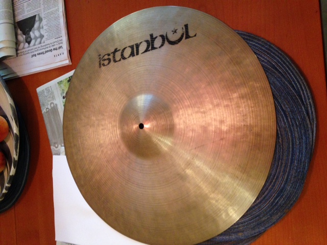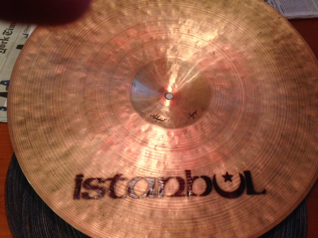 I'm thinking of selling this cymbal that I bought from a Turkish student at the Berklee College of Music back in the day. It's pretty thick. It's got a great bell and signatures from Mehmet and Agop. Handmade. Big Instanbul label. What would a cymbal like this be worth? It's in great condition. I'm thinking it's more for a rock player than jazz, I dunno. A beautiful sound.
