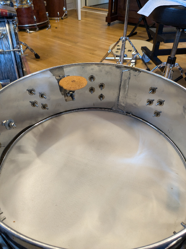 I just got this old 4,75" snare drum. No badge, no stamp on the inside. The shell is not magnetic. Does anyone know what model this is? Any clues much appreciated...
