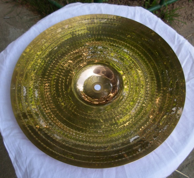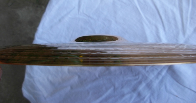 I found this cymbal few days ago,it is 13" crash or top hihat.And... here is thing:By the hammering looks like 90-s Zildjian Scimitar,but no stamp anywere on cymbal,just Avedis Zildjian logo.So my first guess was that someone cut cymbal to smaller diameter and than print Avedis logo,but if it is it was great job,and bell looks like too small for something like 18" and than made smaller.Also,the sound is very nice,I mean nice like it is realy 13" top hi hat or crash.What you can say about it.Did Zildjan made Scimitars with out stamp?