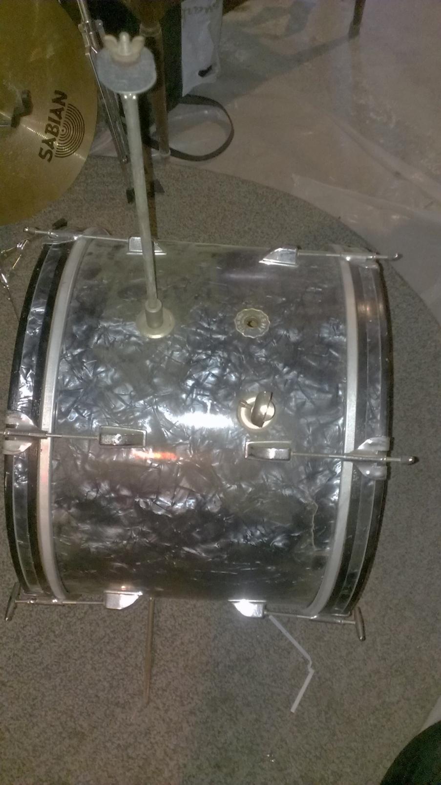 For sale: 60's Kent Bass, $50.00. Original heads, muffler and cymbal mount. Missing part of the tom holder. Wrap is peeling a bit (see pic) Too many other projects. Willing to meet near Phila.
