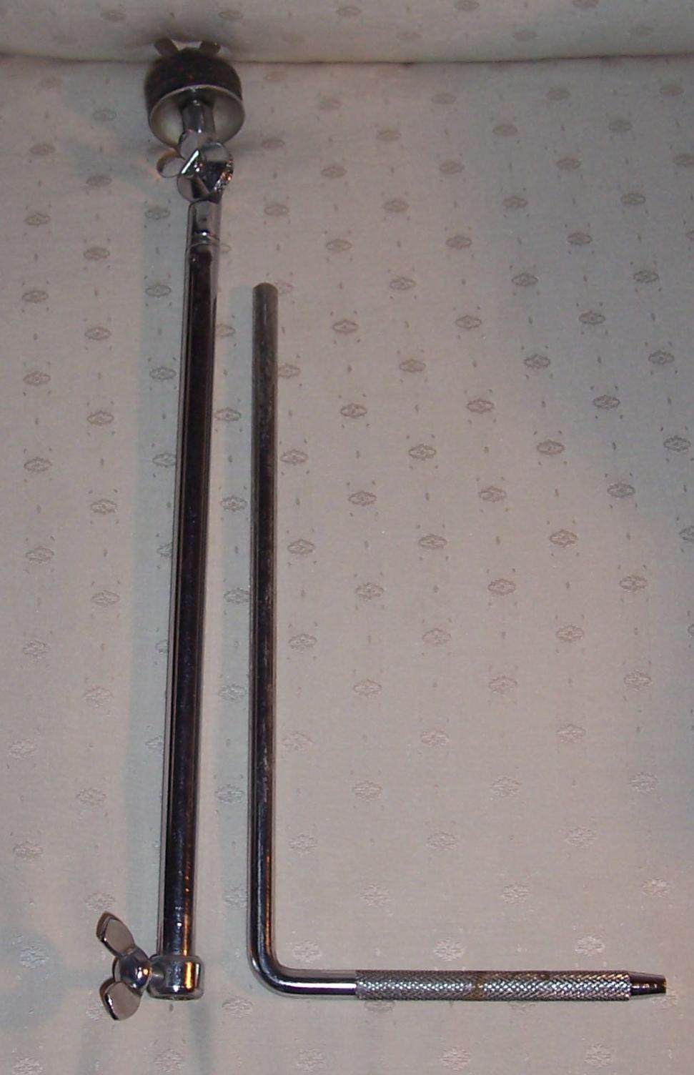 I picked up several L-arms in the lot. One appears that it might be a Ludwig model from the late 50s - early 60s. However, I'm not certain since all of my Ludwig L-arms have the tear-drop shaped tilters, not a round one like the one found on this piece. I'd appreciate it greatly if one of you Ludwig experts would be kind enough to take a look at the first 3 attached pics and provide your input so that I can confirm one way or another.