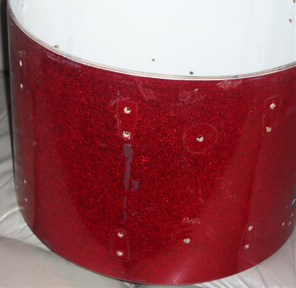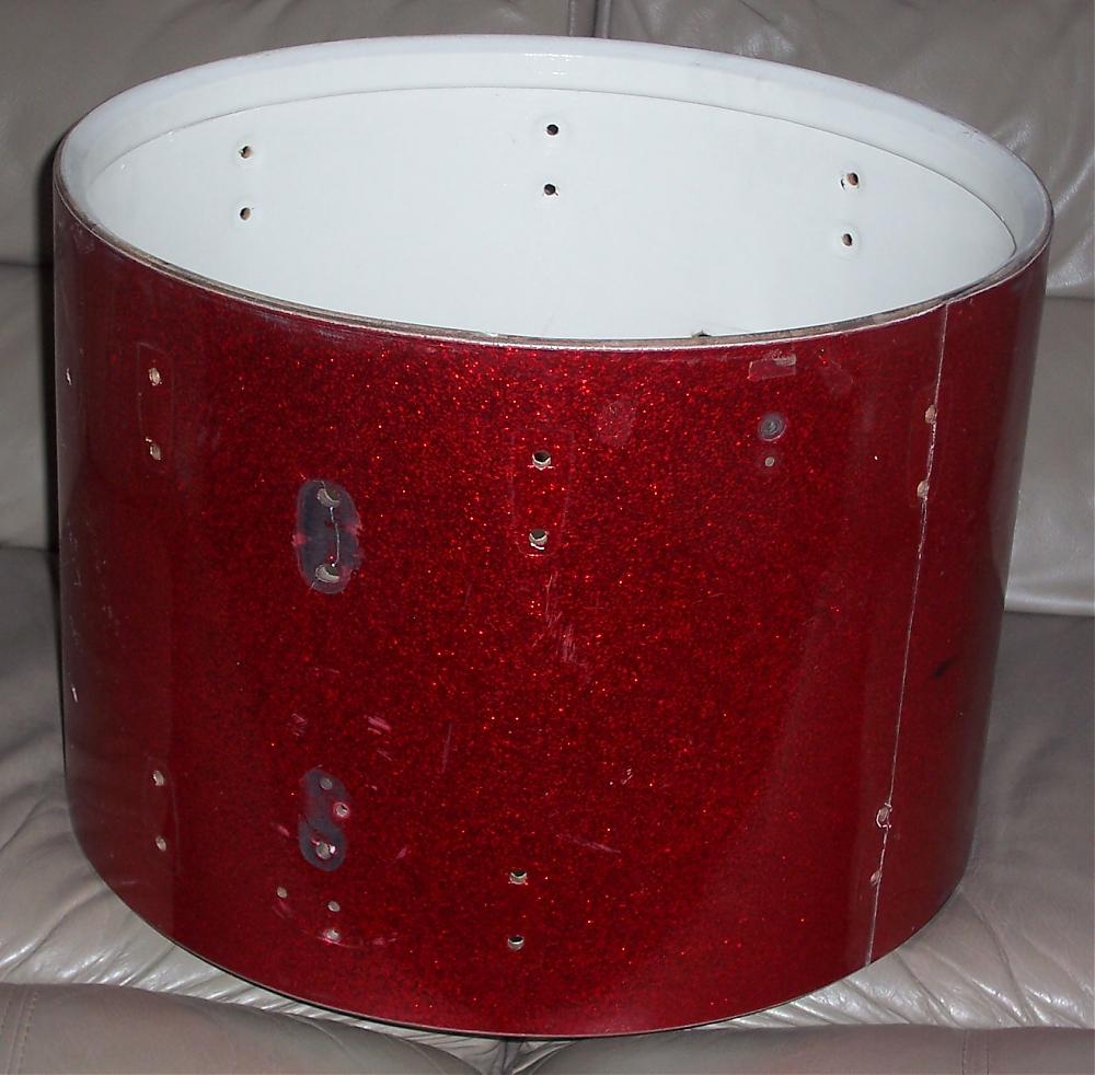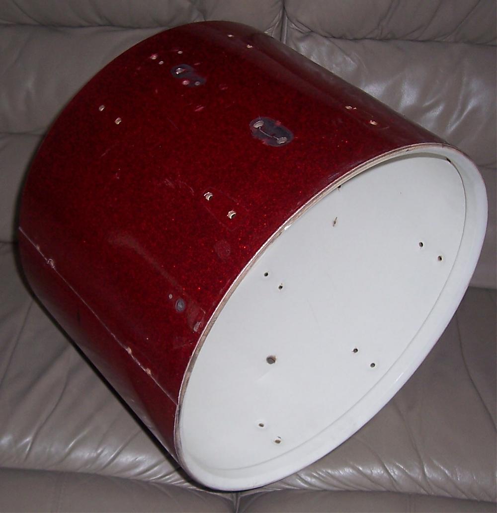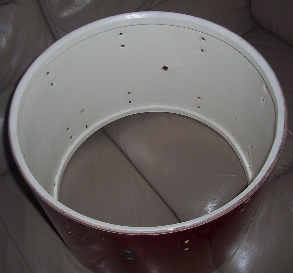 I've got a Luddy shell which is date-stamped Oct 2 1966 that I'm going to dump if no-one has an interest in grabbing it for cheap ($10 plus shipping?). I honestly don't know if it's worth considering since it's got extra holes in the shell and is also a bizarre size (12 x 17). All the hardware has been stripped from the shell as well as the keystone badge. A prior owner had installed some non-Ludwig FT leg mounts on it, creating extra holes in the shell, and it also has a couple extra holes for a couple of metal "rings" that were in the drum. It was originally drilled for the small Ludwig classic lugs. I've still got the original 17" metal hoops that were on it as well as the (non-original) legs and leg mounts, which I'd include if anyone wants them. Have a look at the pics and drop me a PM if you could use it. Thanks!