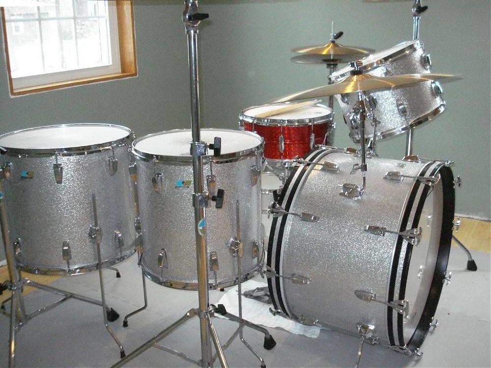 The 14 and 16 have a more rounded profile, which seems to be the standard from what I have seen. The 18 and 24 have more of a sharper 45 degree with less roundover on the outside. The edges on all the drums look to be original. Did Ludwig cut different profiles in different eras or on different size drums?