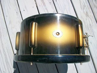 It was played by a fellow who had a jazz trio after the war, nobody notable. The snare is in excellent condition, and was packed away all these years. The only blemish is where the black paint is flaking off of the hoops. Beyond that, the normal wear and tear is not evident on this beauty!