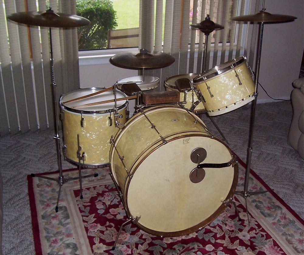 My kit consists of a 14x24 bass drum, 9x13 rack tom and 6.5x14 snare drum. The kit came with a matching 16x14 Leedy floor tom.