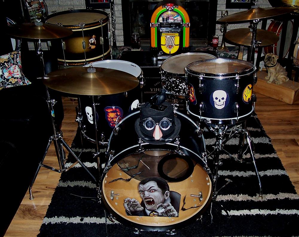 Need a cracked cymbal or two for effect (visual anyway). Find a junk one can carve a bite mark in it.