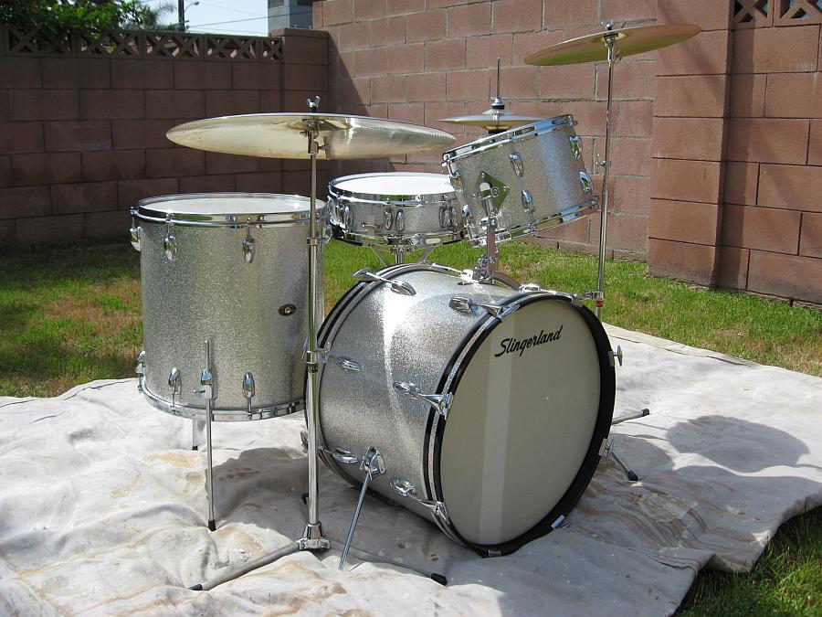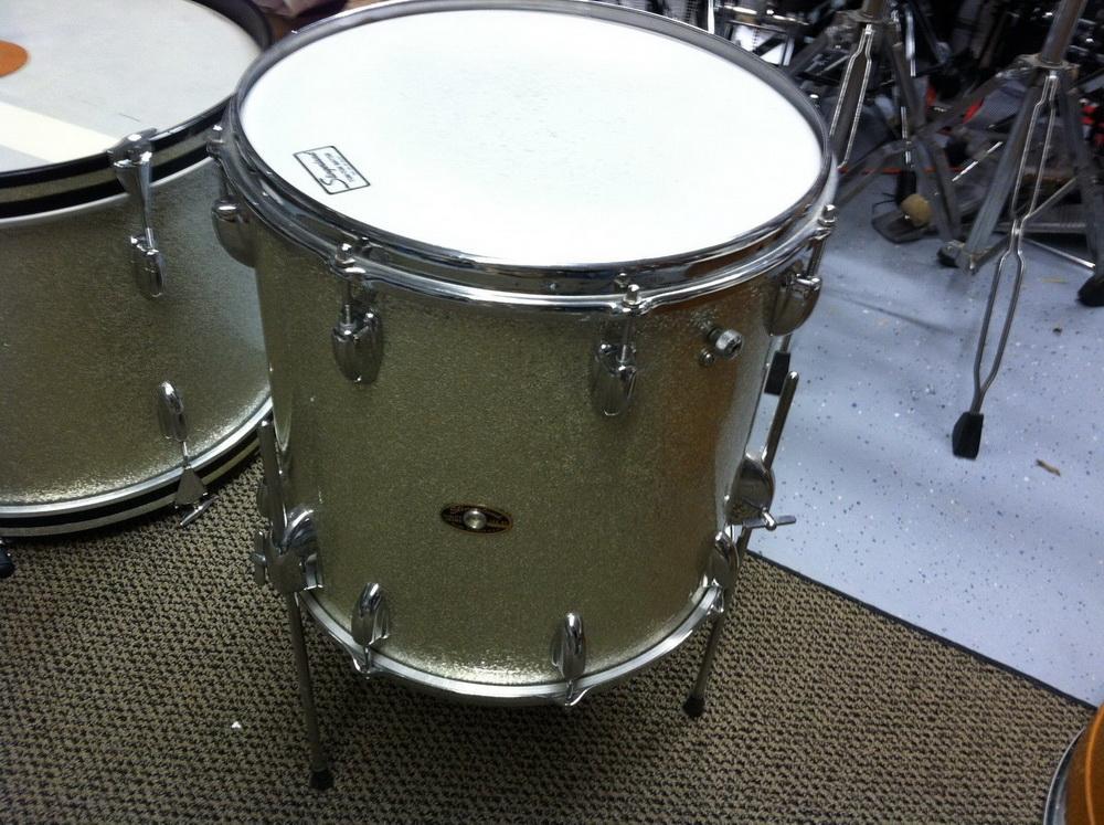 I just hit the "BIN" button on this gorgeous 1967 Slingerland 14x14 floor tom in Sparkling Silver Pearl. The serial number is in the same range as all the other drums in my kit, plus it is in exceptional condition. All correct square-head tension rods, COB hoops, straight tom legs, plus an original reso-side "Tom-tom Battter" head. The top head is a 70's Slingerland, but I do have a 60's NOS Tom Batter! My kit is a 12/16/20 with matching Artist snare drum. The addition of this 14" floor tom will make it a "Modern Jazz Outfit No. 9N". Yes, I also have the correct COB Krupa Sound King snare drum! Really looking forward to this tom and will post pictures with my kit. I'm happy with the way 2015 is starting!