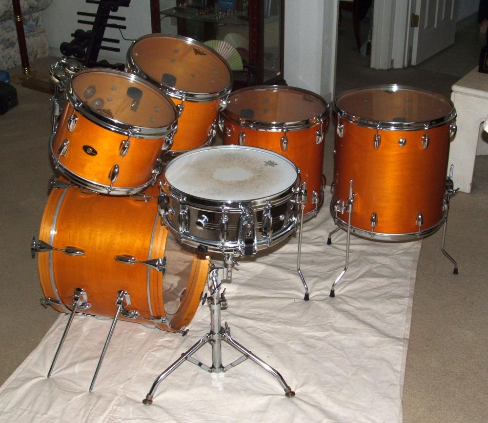 Fortunately, I can answer some of those questions as I am the original owner of these drums. I purchased them on special order back in December 1976 and basically it’s a 50N model with the following upgrades and/or changes: Super Set-o-matic holder, Buddy Rich snare, 20” bass drum and an extra 14” floor tom. You might be amused to hear how the company rep gave me this story about some new shells they were offering called “pro shells” that were available for a small extra charge. I can still see him putting his hands up as if he were caressing a beach ball as he described how the shells were glued up under pressure and heat. In my as yet not fully-developed brain I said to myself: “no rings – must be strong, heavy - that's good, pro shell - Buddy must play these…me likey!” When other people would comment on how they sounded I would say: “well, that’s because they’re special order drums with special shells – not many people have them!”