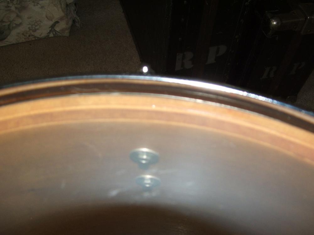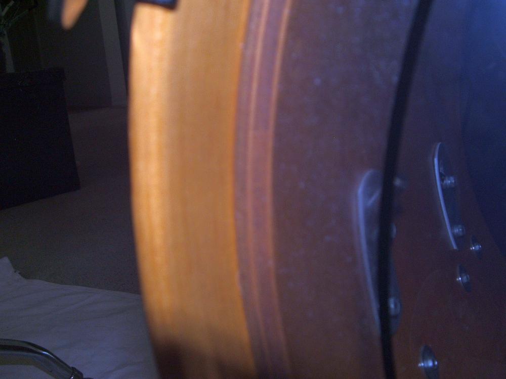 But why are the plies on the rack toms different and what about the jump in serial numbers? Well, as everyone knows, a lot of American manufacturers in the late 70’s were cutting corners and Slingerland was no exception. For example, the original snare that came with the kit had a dent in it. That and the hardware in particular, had so many issues that I even sent a letter to Don Osborne about it and got a reply back from Larry Linkin (the copy of the letter wouldn't upload or you could see his response). It was sometime after that when I discovered that the bearing edges on all of the tom shells were not true so I sent every one back to Slingerland demanding that they either fix the edges or send me replacements (luckily for me, Slingerland offered a 5 year warranty). This was in 1979. They sent me replacement shells and the bearing edges are as precise as any you'll ever see. Whether they were made by Slingerland or came from someone else I have no idea, but you can see for yourselves the difference in the new shells compared to the original bass drum shell in the pictures below. Since I had some weather checking with whatever finish they originally put on the drums, I decided to have the whole kit redone with polyurethane varnish before I put everything back together (6 coats sprayed with fine wet sanding between each coat and a final rubbing of pumice and rottenstone followed by carnuba wax). They tended to get hazy after a while so I took the wax off and used burnishing cream to bring the shine back to what you see in the photos. I thought the chrome inlay on the bass drums hoops looked cheesy so I left it off when they were redone.