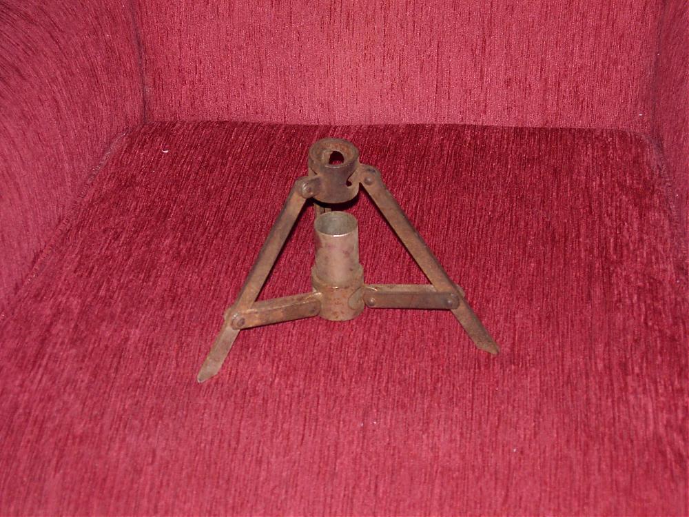 Maybe the base for a little trap-table (basically a thin board on a stand,) that other doo-dads were clipped to. Way back in the Stoned Age (68') a buddy of mine got hold of a set of coconuts from the 20's, the base was similar to yours. BTW, I got hooked on playing those stupid coconuts! Big fun to play.