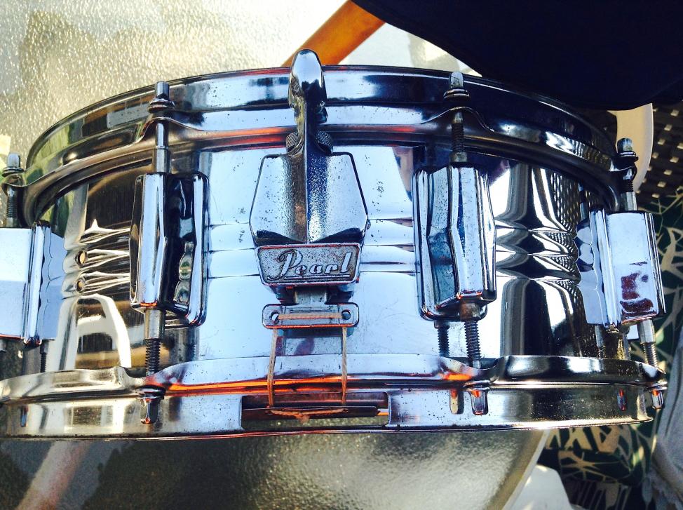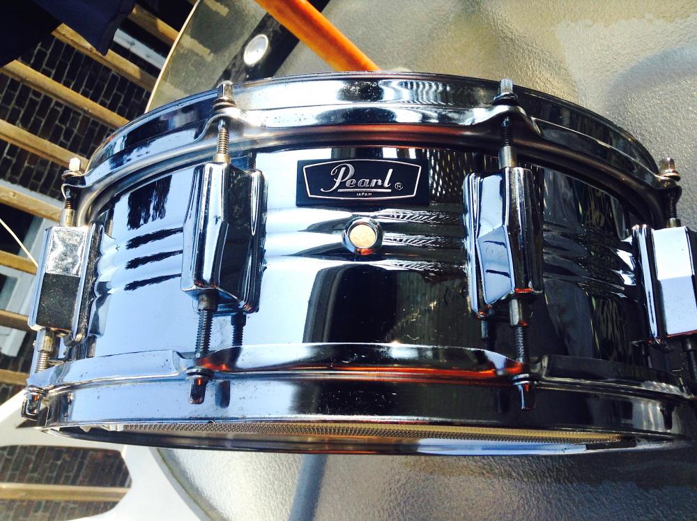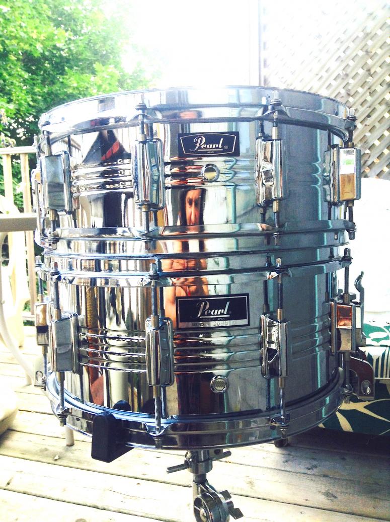 I just got home from drum teching at the Montreal International Jazz Festival/ Francofolies de Montreal with a 50 pound bag of lightly used drum heads and the snare I have been looking for for a while, a COB Pearl 4214. I started high school in '79 and am a big Stewart Copeland fan. A few months ago I grabbed a Pearl B-714D, which is also a 3-line COB without the parallel strainer, but 6.5 deep. I really like that one but still wanted a 4214 (5 deep) & finally managed to snag this one, which needs a serious cleaning, butt and strainer plates and a tone control.