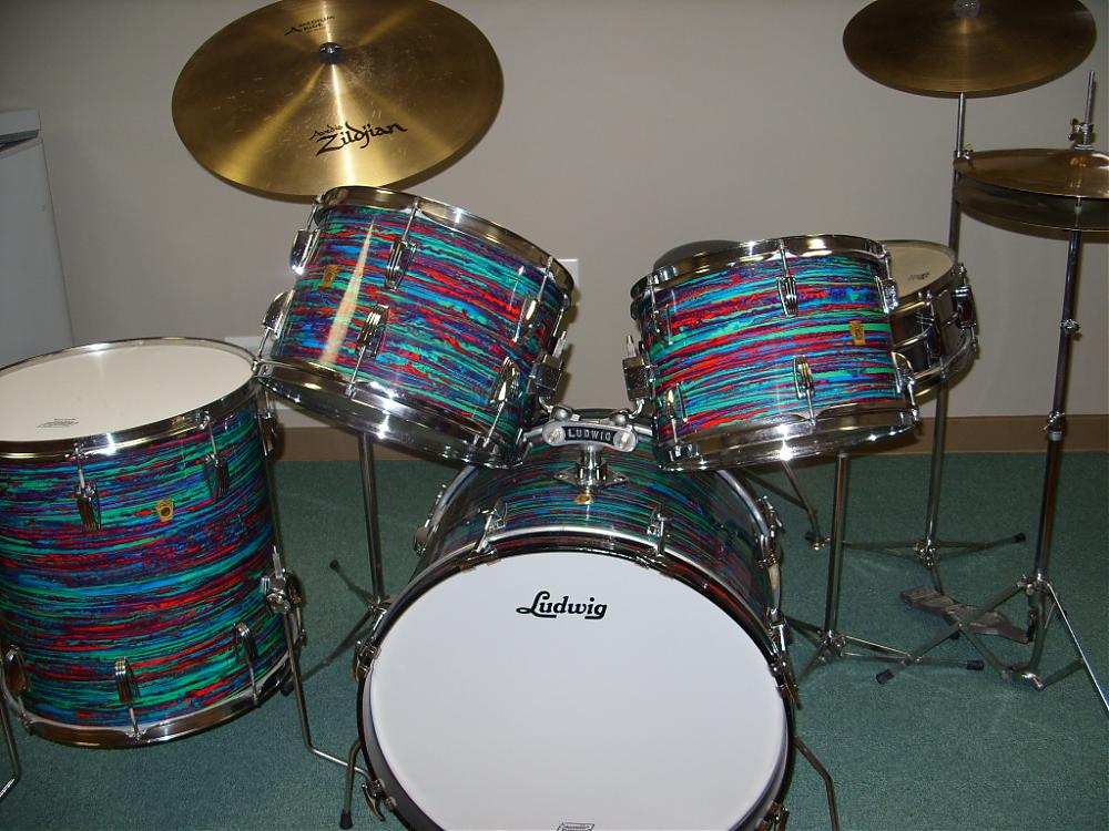 I just found this site while trying to determine an approximate value for my Ludwig "Hollywood" set for insurance purposes. I am in awe at the amount of information available here including the original Ludwig sales brochure showing my exact configuration! Please bear with me if I screw up some of the terminology, as there are obviously many experts on this site, and I am not one of them.