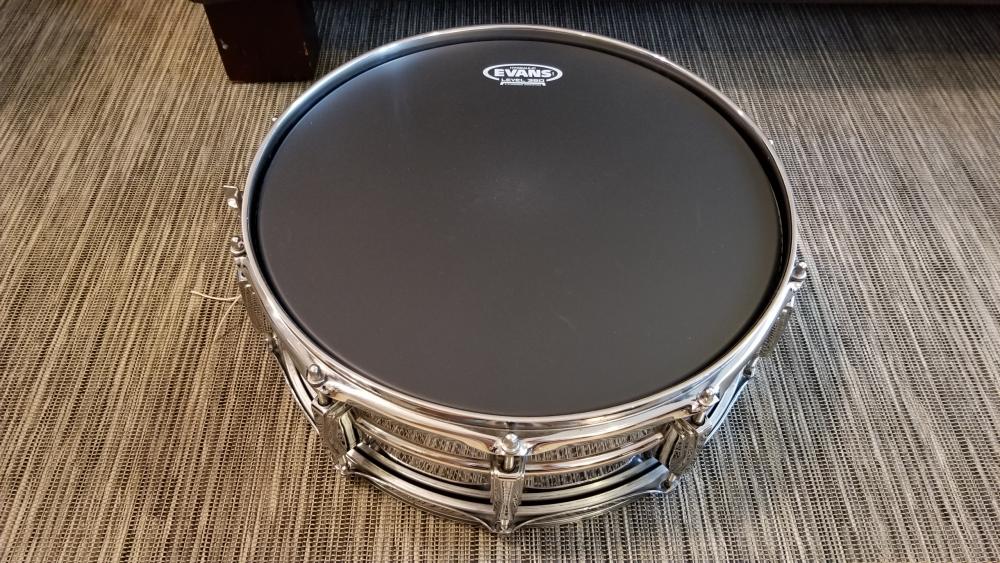 I put on a Ludwig snare side head. I really like the liw profile of these heads as a couple of snares I have can have issues with drawing the resonant side head down too far when tuning up.