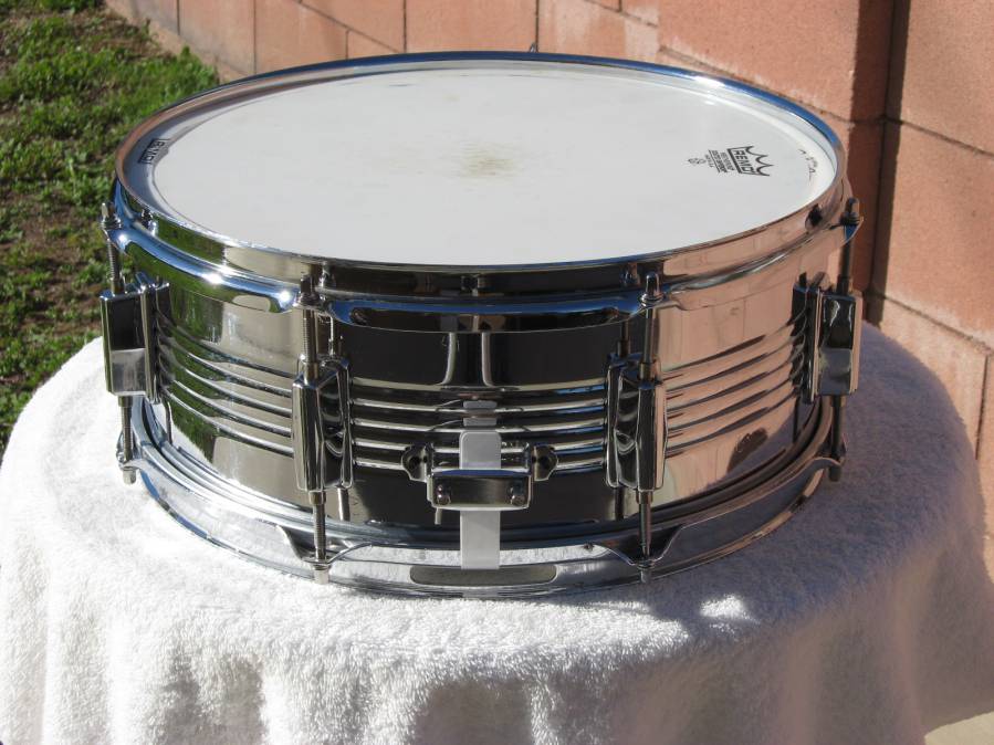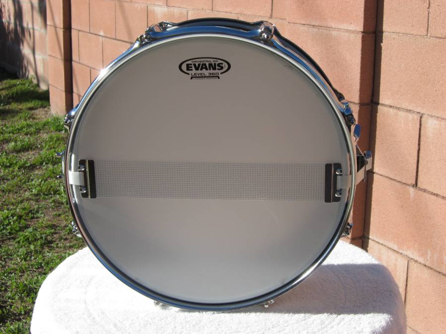 A decent drum for a beginner, practice room, etc. New snare wires, snare-side head and tension rods. Batter head has lots of life. I made a narrow muffle ring to help control the overtones.