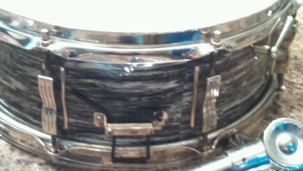 Obviously other people were questioning this drum the same way I was. I was sooo tempted, despite the damage (dropped on the throw off apparently). Price was right (for OBP...blue or red sparkle this would be a $100 drum tops with that damage) and the kicker was the pre-serial badge placement on the panel next to the throw which is like Ringo's and usually ups the price considerably.