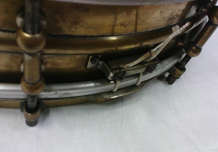 But, it´s not only the sound, mainly the look of the gracefully aged brass shell, tubelugs and hoops catched my eye when I searched feebay. Even the claws for the tension rods are brass. The hoops obviously are not flanged but soldered accurately. A true masterpiece of British craftsmanship.