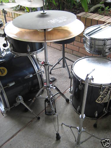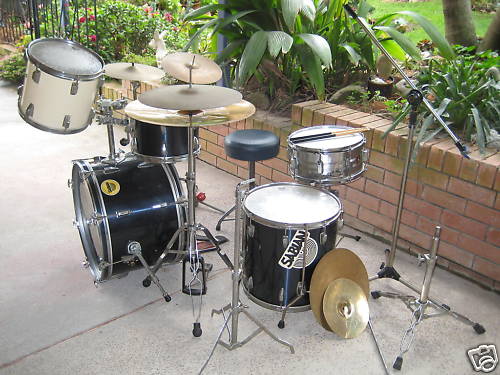My first kit, 1983 Ludwig Rocker? (it has the classic lugs and 4ply maple shell) 22,12,13,16 ..now in black oyster pearl. I still have it