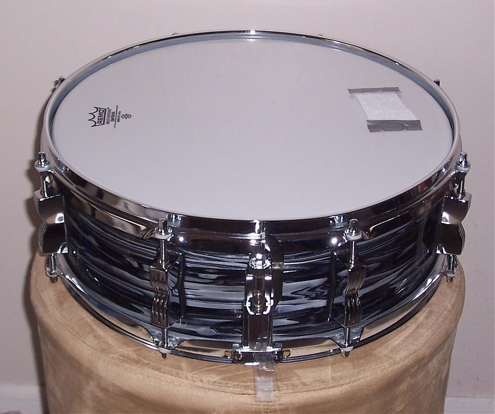 It's simply a drum that I had bought from a gentleman playing in a Beatles Tribute Band that he wrapped in Precision Drum's 60s Oyster Black Pearl. The prior owner painted the interior shell white to resemble the actual Ludwig drums from the 60s.