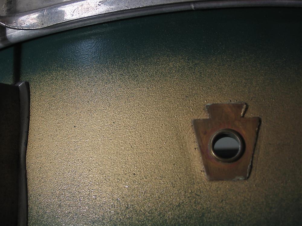 this finish does not look original to me. there are traces what appears to me of sandpaper around the badge. don't think WFL did paint job's that were that bad.