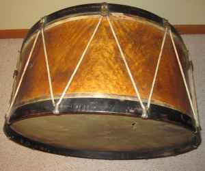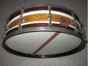 I've got an opportunity to pick up this matched pair of Lyon & Healy drums but don't know much about them although I must admit that I'm a sucker for birds-eye maple. The snare drum measures 16 x 5 and the bass drum is 26.5 x 14. The snare's got goatskin heads while the bass drum's got torn calfskins. Any "words of wisdom" regarding these would be appreciated. I'm just wondering whether they'd be worth buying as display items and/or collectibles.