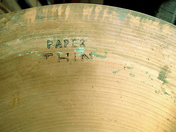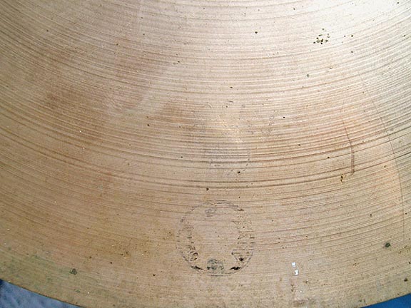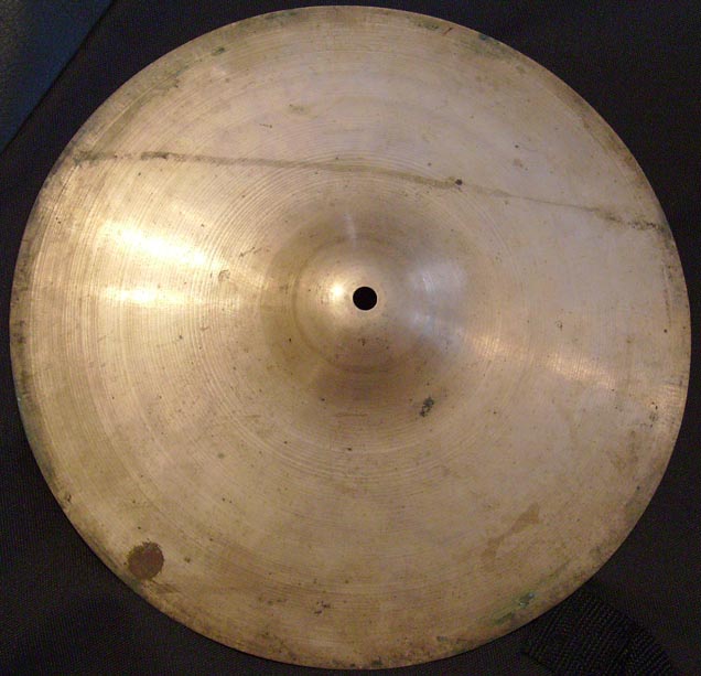 12" Pasha splash cymbal, also circa 1970's or perhaps earlier. Round "Made In Italy" inkstamp still visible on top, "Pasha" inkstamp very faded & barely visible above just above the round inkstamp -- hard to see in photos. Pretty heavily tarnished and one rust spot, could be cleaned considerably. 3/8" diameter center hole. Thin, not as thick at the bell or floppy/bendy at the edges as the UFIP I have listed, weighs just under 1 pound or approximately 374g. No edgewear or chips, no cracks or keyhole. Nice splash cymbal, or could be used as a hi-hat on some older stands. Asking $30 shipped in USA, Canada extra.