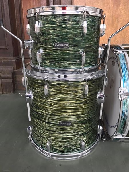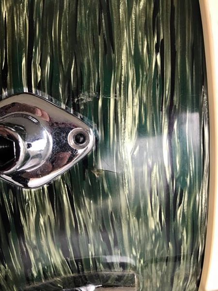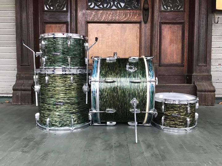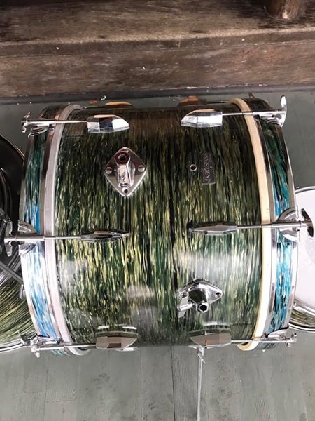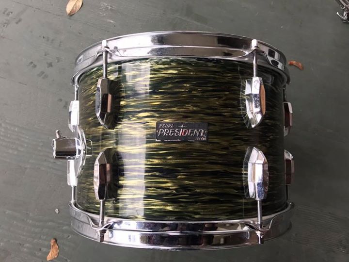For Sale: Pearl President kit with phenolic shells in faded oyster blue. This kit is super rad - the blue has faded to a deep sea green. The shells phenolic, which is a seamless resin Pearl experimented with back in the 70s. Very cool sounding drums. Wrap is in nice shape A one small crack in the wrap on the bass drum by the cymbal mount. Comes with two arms for the toms, but only one can go in the bass at a time. Sizes are 20x14 12x8 13x9 and 16x16. $875 shipped CONUS OBO. Email [email]hawthornedrumshoppe@gmail.com[/email] if interested.