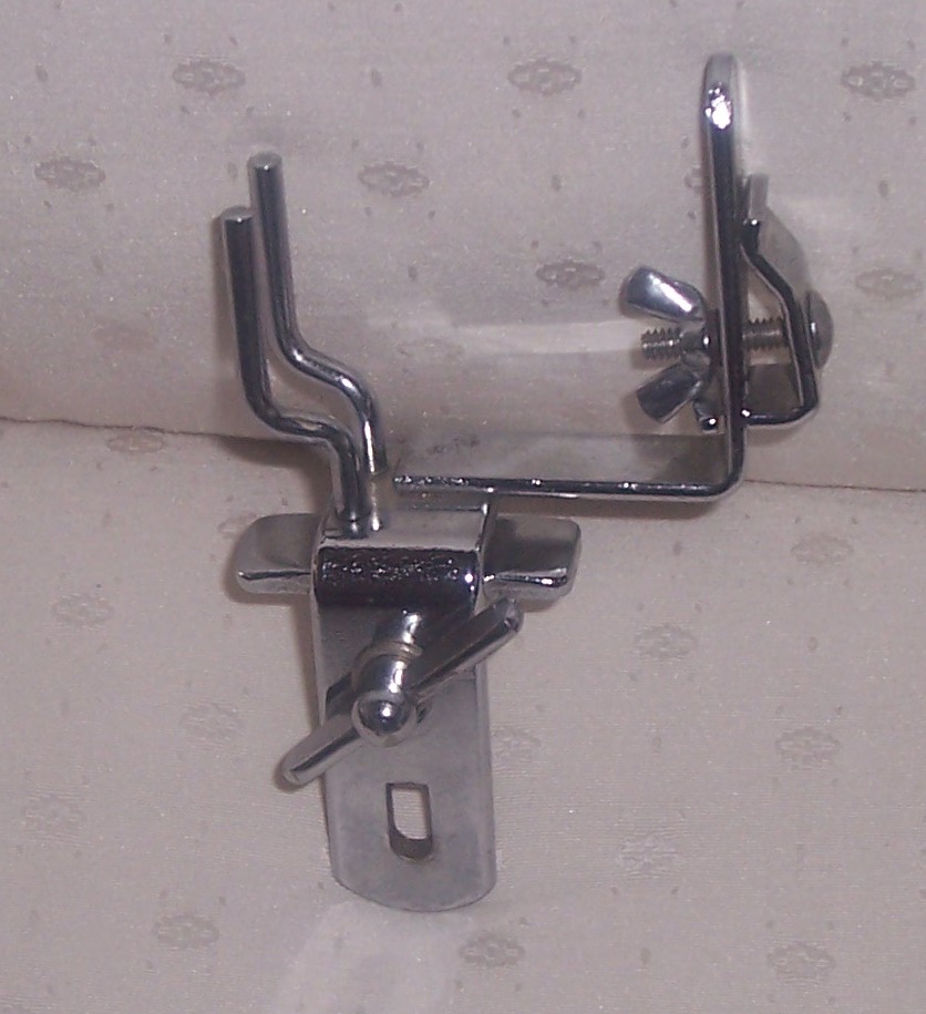I've got a combo block/cowbell holder that came with a Cleveland-era Rogers kit that I purchased used some time ago. I have no idea whether Rogers manufactured its own holders. This particular one has no markings on it whatsoever. I'm hoping that somebody might be able to I.D. it for me.