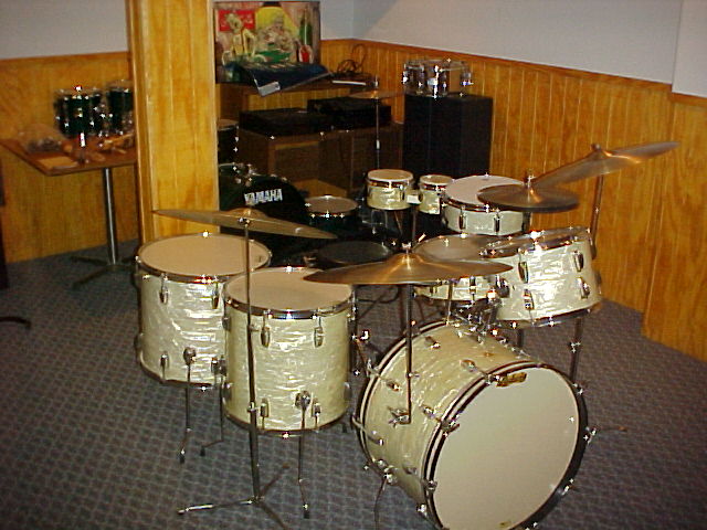 Everything has been in hard cases for the last 35 years! Cymbals look like they just came off the show floor. 22" bass, 13" mounted, 16" floor, and a 18" floor added in 1965 (serialized). A 1959 Ludwig Buddy Rich model Super Classic snare and a 1961 Slingerland Sound King snare were with this kit.