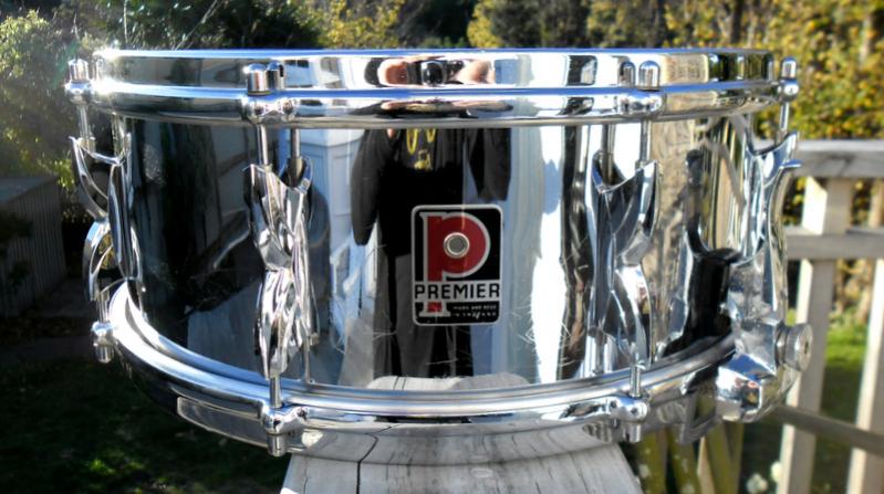 I picked this snare up recently. It's an early production Premier 2000 with COB shell. It seems that Premier used the brass Royal Ace shell at the start of production before moving to the COA shell. It also has the earlier badge and beer barrel hoops. It looks like the one from the 1968 catalog where the 2000 first appeared (although it was first released in 1966). There doesn't seem to be too many of these around.