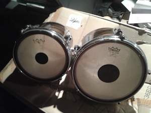 Bassdrum, Snare, 2 top toms, one floor tom , 2 bongos, HH, Crash, ride etc