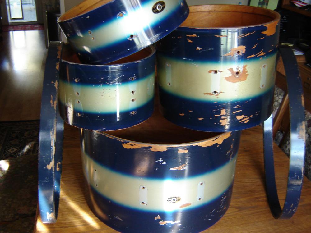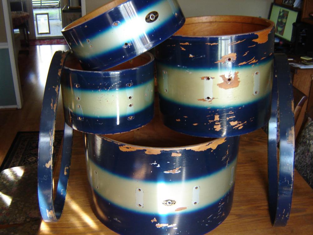 I've got a Slingerland mid 60s Duco kit that needs some TLC. I want to preserve it as much as possible and keep the vintage vibe and road worn look like the old Fender guitars. I've torn apart the drums - cleaned the hardware and plan to install new heads all around. I want a set of "new" - "old" drums that has a ton of vintage mojo.