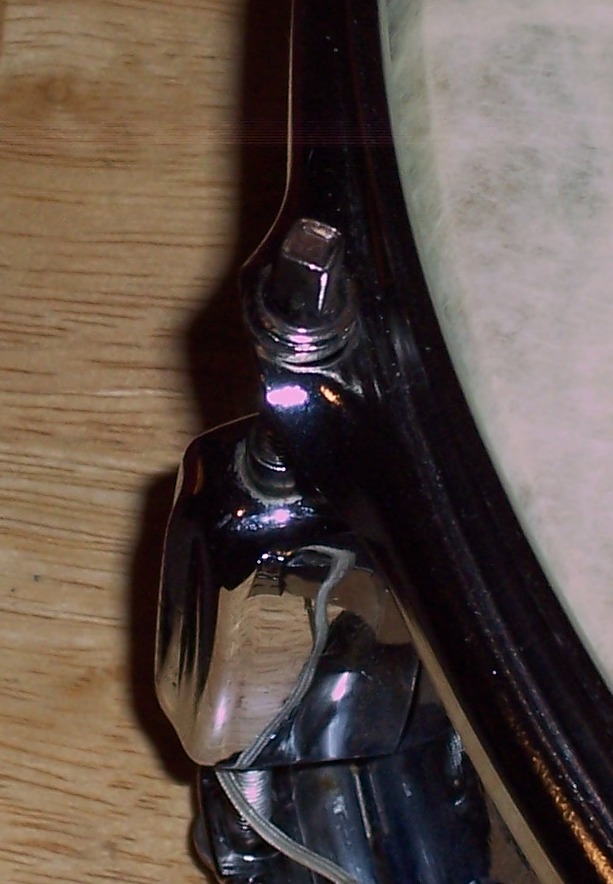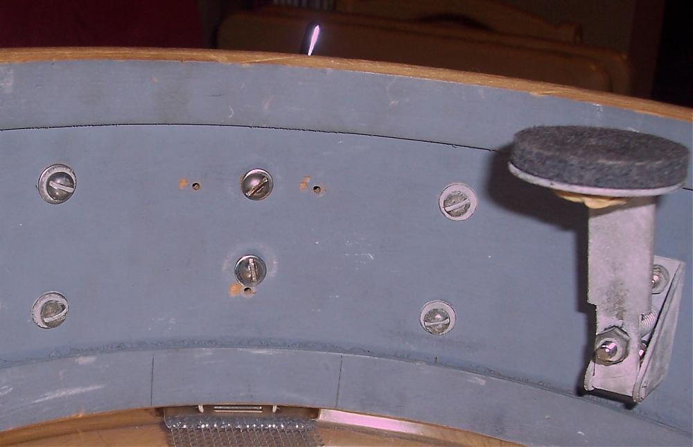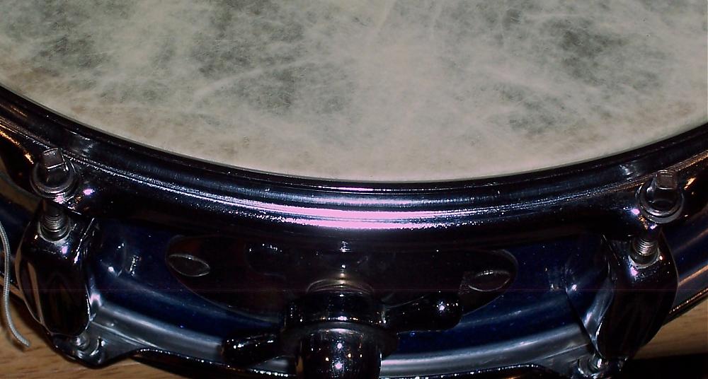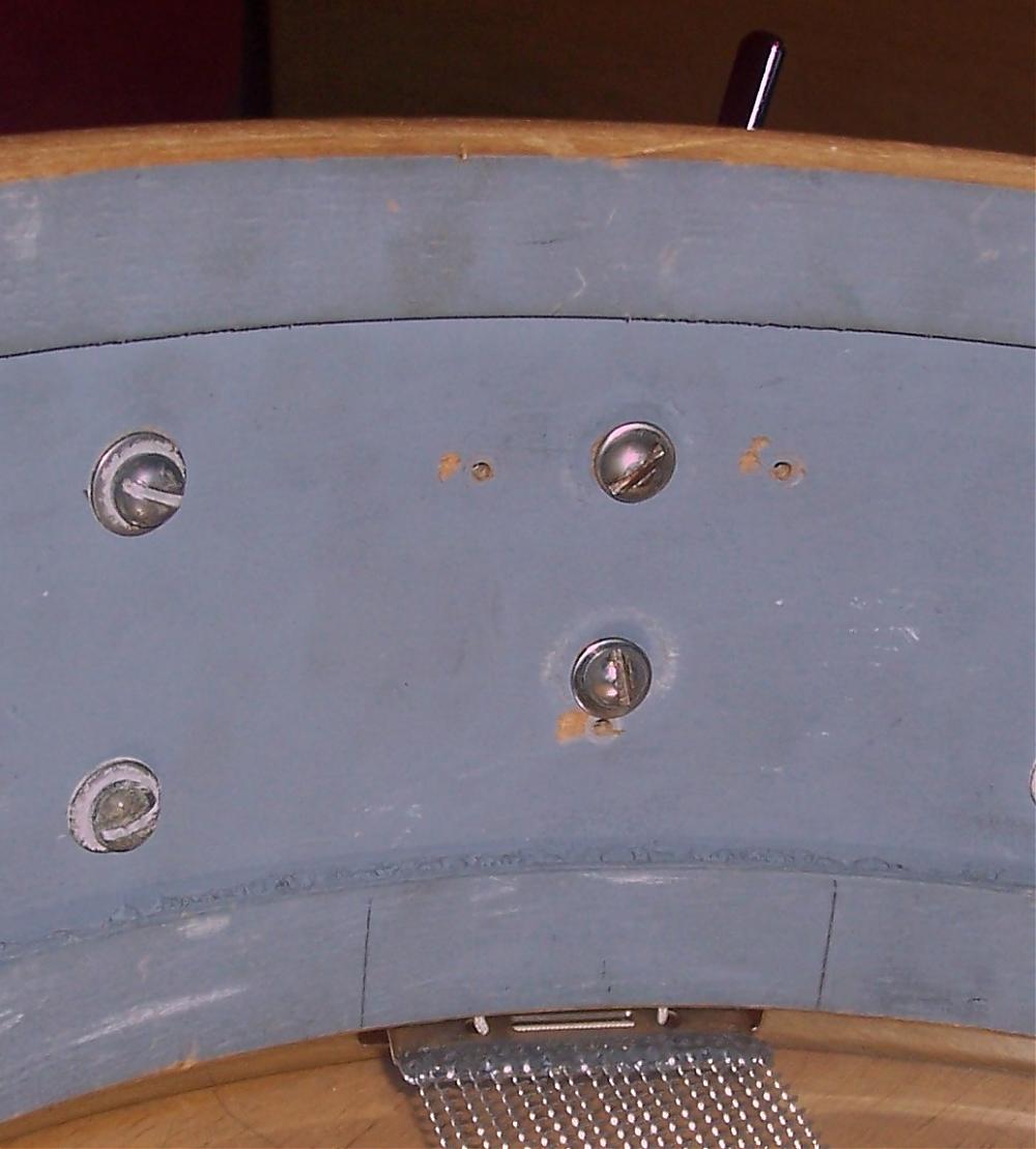 The drum's got a Rogers Swiv-O-Matic strainer installed on the shell. However, I'm assuming that this strainer wasn't original to the drum since there are three extra small holes in the area where the strainer is mounted. Would my assumption be correct? The final two pics I've posted show these holes from the interior of the shell. Does anyone know which strainer would have been installed utilizing these three holes and would this strainer have been original to the drum?